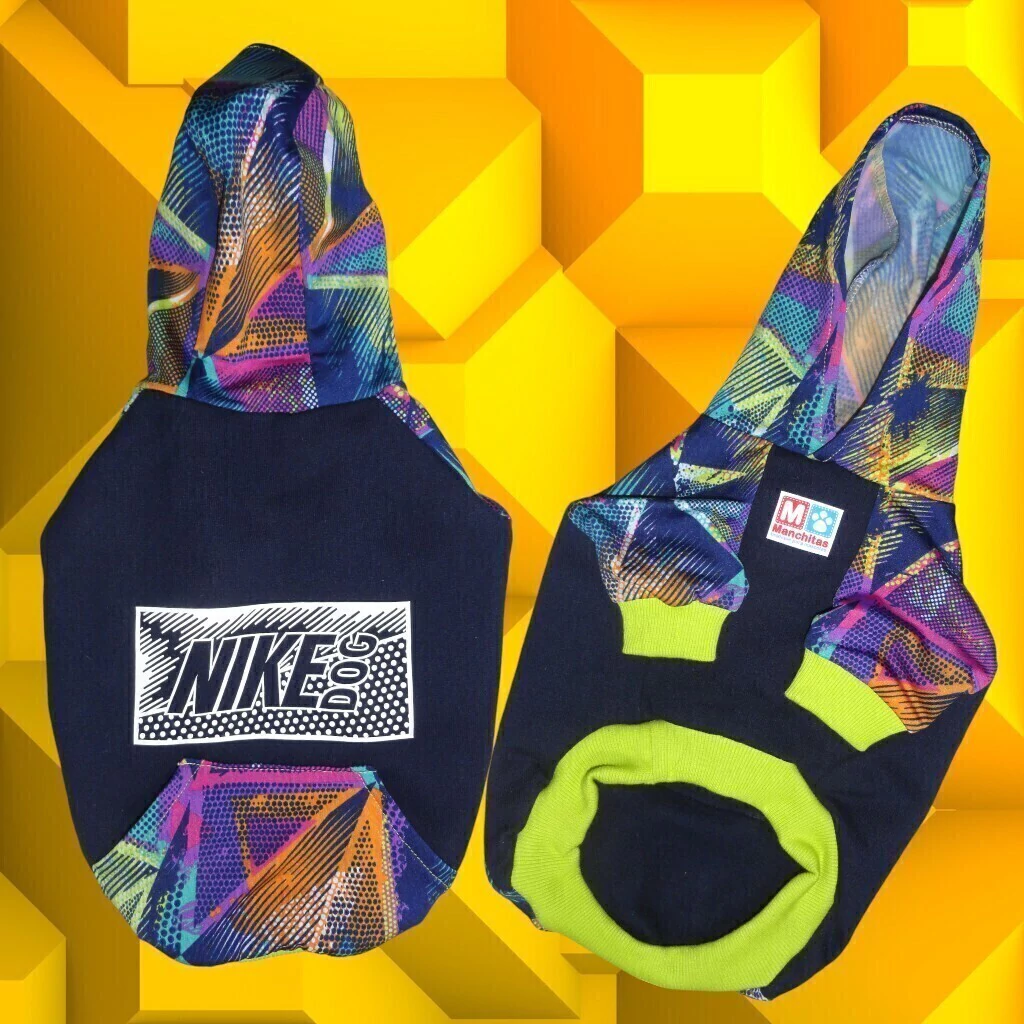 ¡Dale a tu mascota el estilo que se merece con el Buzo Nike Dog Colores! Este buzo, confeccionado en frisa lisa azul y con un diseño estampado en el bolsillo y la capucha, es perfecto para que tu perro luzca moderno y cómodo.