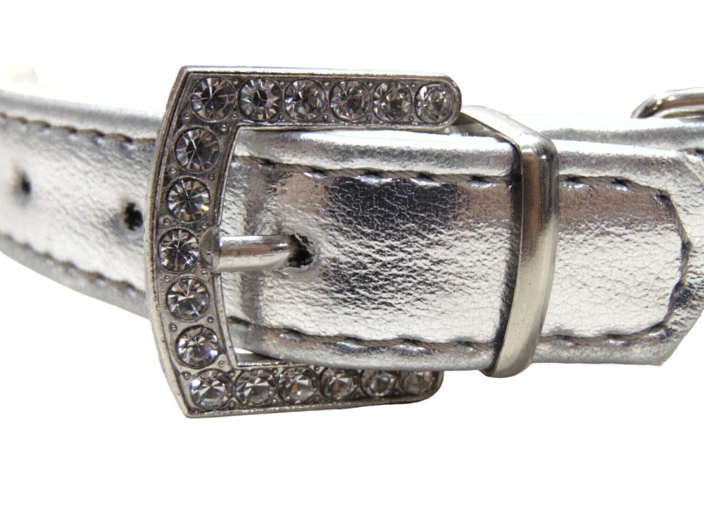 Dale un toque de estilo roquero a tu mascota con nuestro collar adornado con tachas de calavera y una hebilla brillante con strass. Con un ancho de 2 cm y un largo de 46 cm, este collar es perfecto para perros y gatos que desean destacar con una apariencia audaz y única. Fabricado con materiales duraderos y adornado con detalles brillantes, este collar garantiza que tu mascota luzca elegante y a la moda en cada paseo.