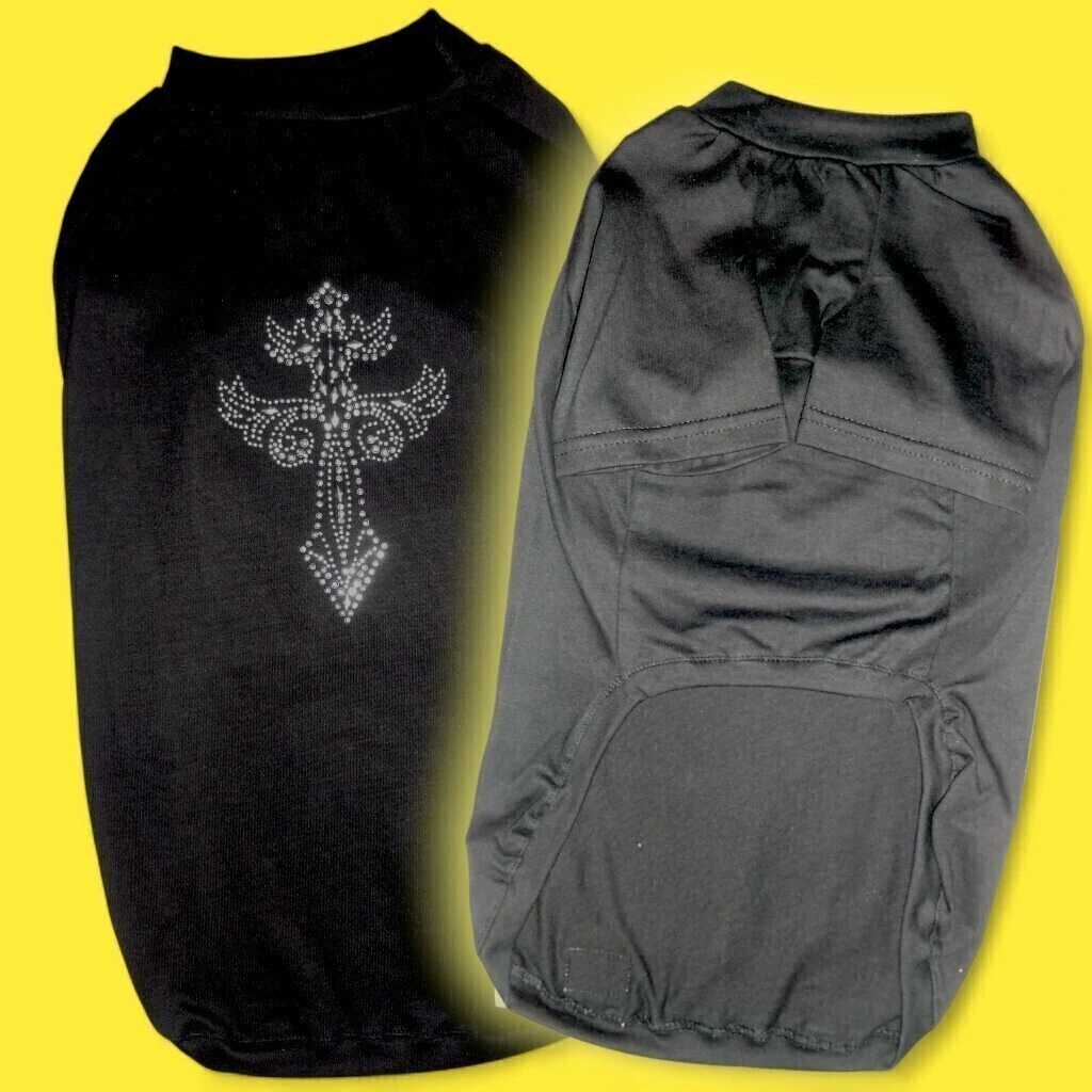 ¡Conviértete en el héroe de tu perro rockero con la Remera Negra con Brillos! 🌟🐶 Esta prenda, hecha de algodón suave y elegante, cuenta con un aplique de strass que resalta su estilo único.