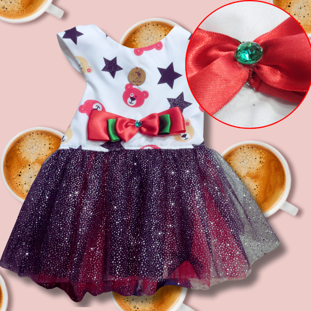 Haga que su mascota destaque en estas fiestas con el Vestidito "Destellos Navideños". ¡No pierda la oportunidad de que su compañera peluda brille con elegancia!
