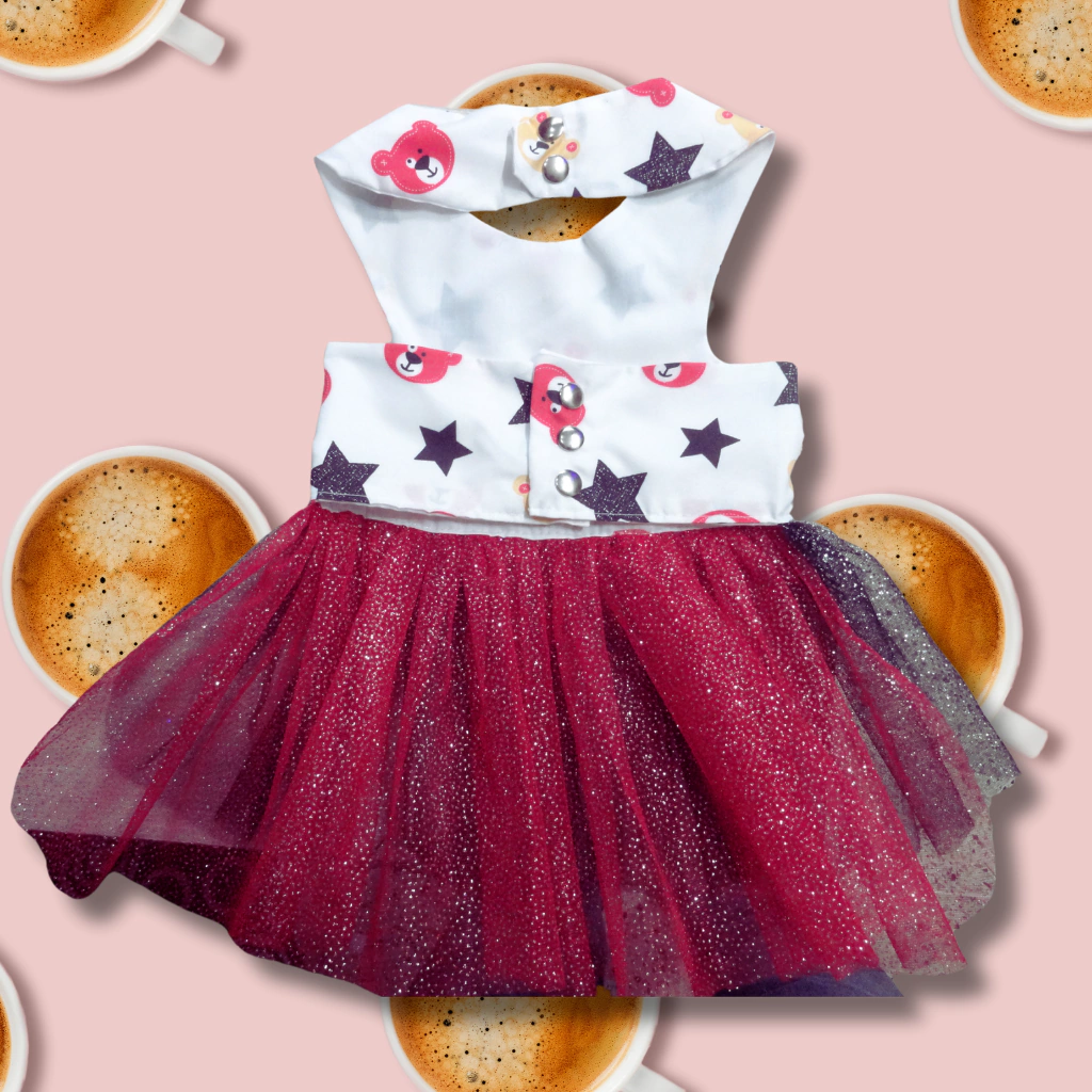 Celebre la magia de la temporada navideña con nuestro Vestidito "Destellos Navideños". Este encantador atuendo está diseñado para que su mascota brille en cada ocasión especial, combinando tela estampada y tul con glitter para un efecto deslumbrante.
