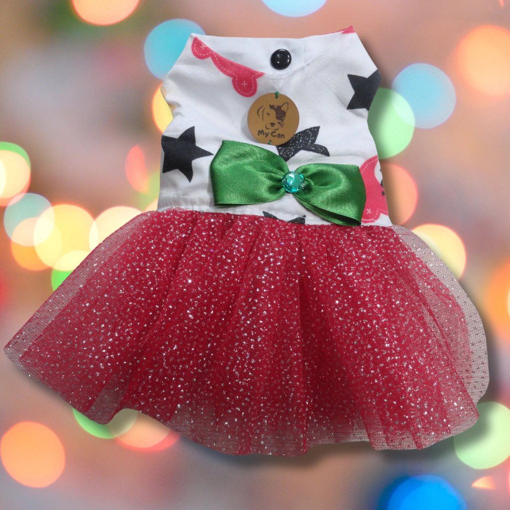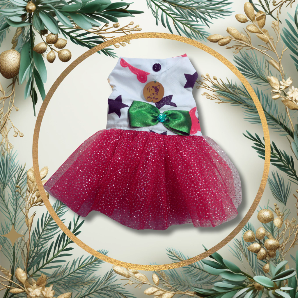 Haga que su mascota destaque en estas fiestas con el Vestidito "Destellos Navideños". ¡No pierda la oportunidad de que su compañera peluda brille con elegancia!